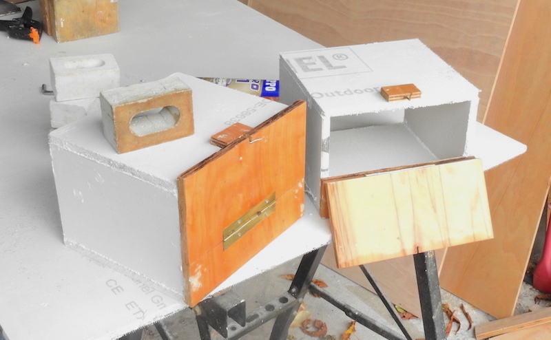 Any commercial nest box would have needed a larger hole in the inner leaf and would need to be modified with an inspection door, so we went for the DIY approach. Although treated quality plywood in this situation is probably perfectly OK, we thought we would give a recognised building material a go.
