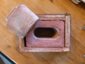 As the cement board could not easily take a screw without cracking, the whole thing was glued together (we used Hippo Pro 1). We constructed the back of the box, with a hinged door out of 12mm plywood. The hinges are 'piano' hinges