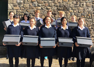 | This picture shows the pupils proudly holding their boxes. |
